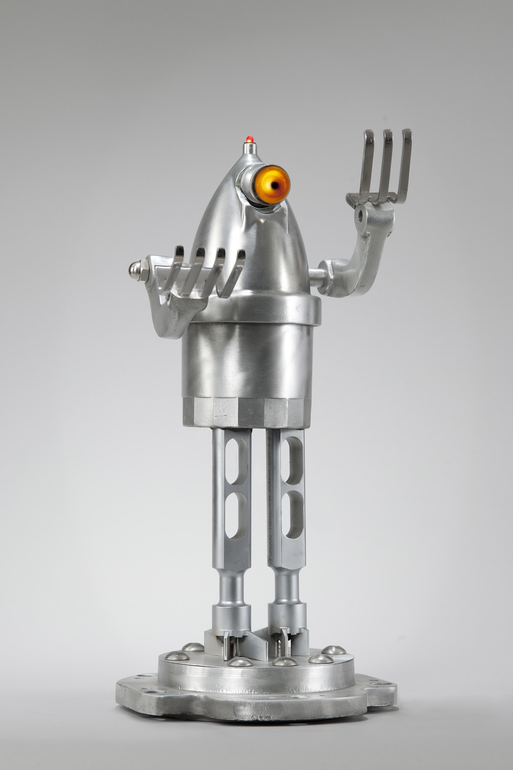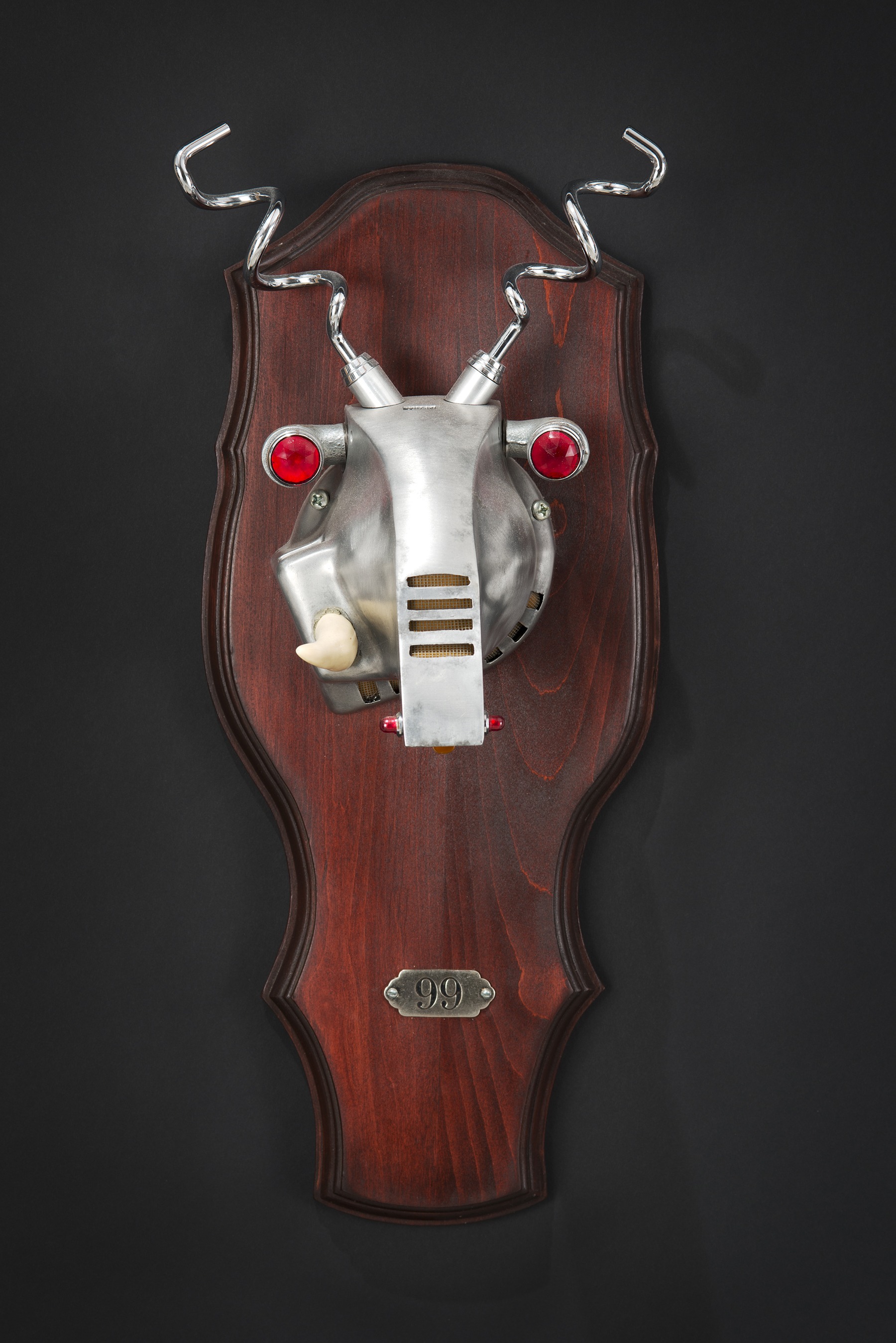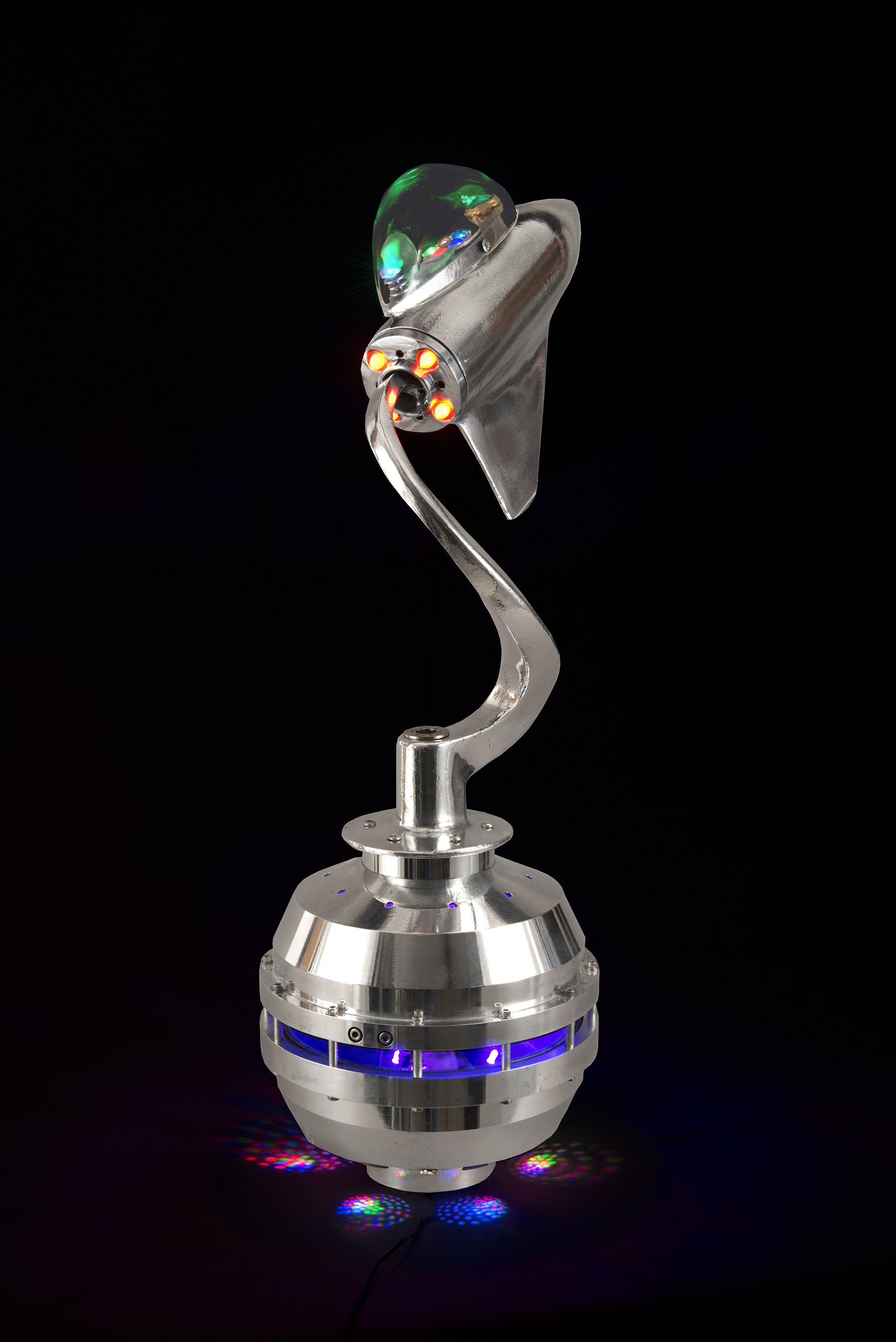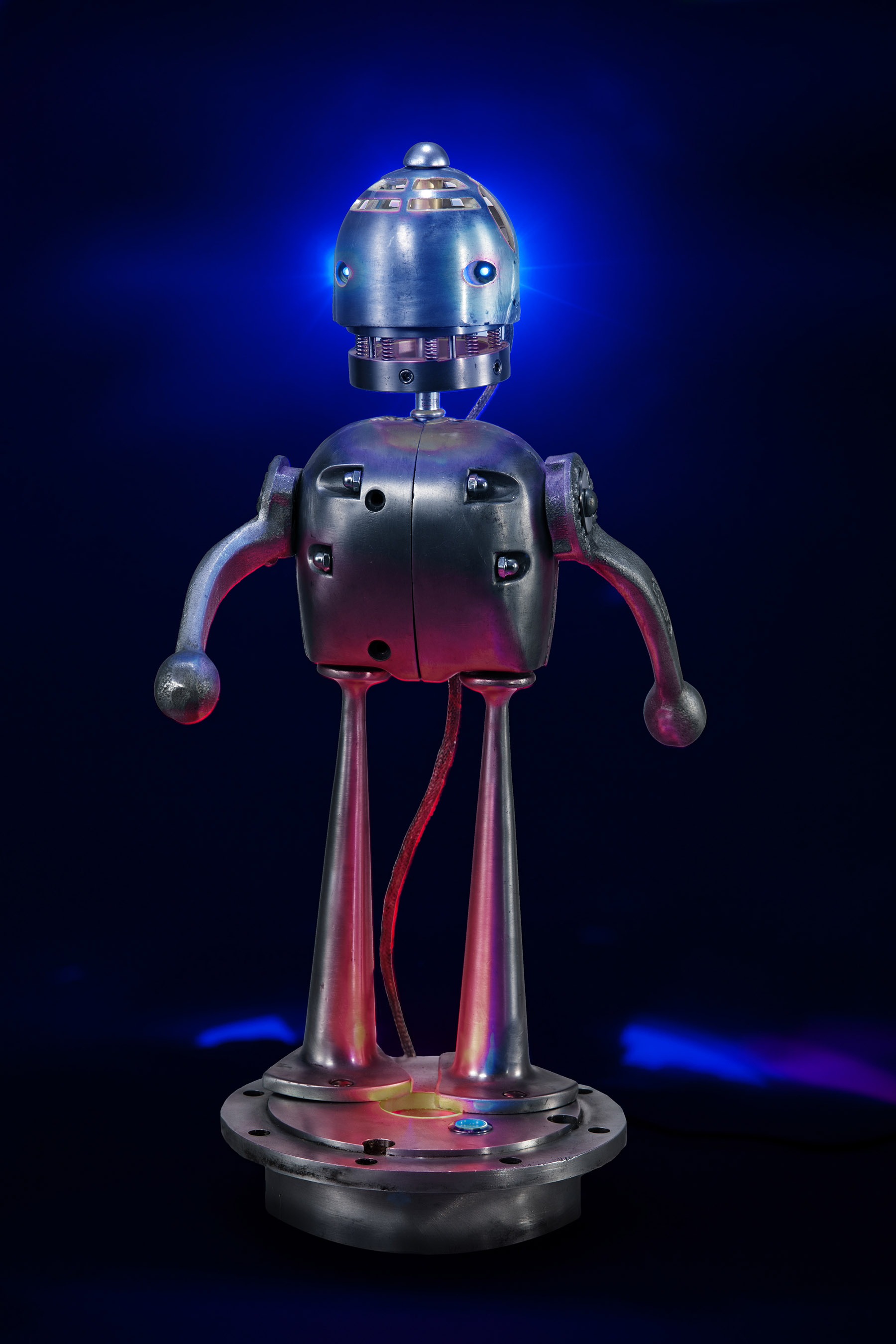 A piece begins with a shape that may remind me of a robot head, a rocketship, the body part of a creature or simply a beautiful base for a lamp. Assembling the rest of the components is almost like putting together a puzzle, trying out different pieces until I get something I consider a nice combination of parts.”
