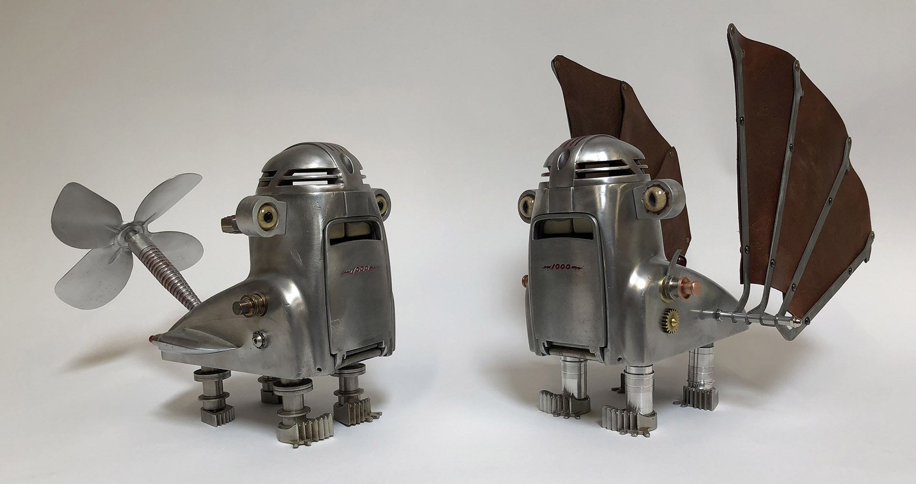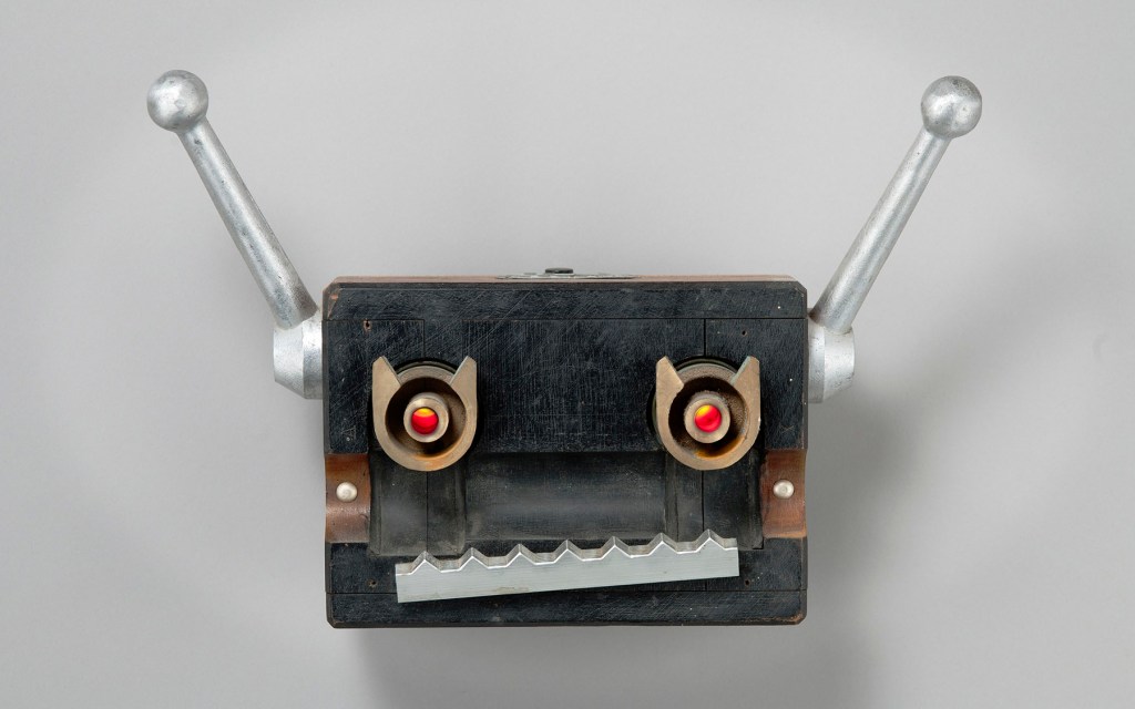 There’s something charming about mixed-media and found object sculptures, in the way that they combine to create a whole new personality. That’s definitely the case for these robots by Tal Avitzur, a California-based artist who makes a range of creatures that look like they might walk out of a 1960s sci-fi film.